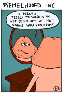 Piemelhoofd zag eigenlijk al zo’n 30 jaar terug het licht als Dick Dickson. Grappige tekeningetjes van een lul met een gezicht. Piemelhoofd geeft op snedige wijze luchtigheid aan de waan van de dag anno 2023. Sommigen zien het anno 2023 misschien liever gecanceld in verband met de verpreutsing en de vertrutting, maar ik vind dat het gewoon moet kunnen. Of eigenlijk wij vinden dat, want de teksten komen van piemelhoofd himself: Pieter Kok. Maar daarover later meer.